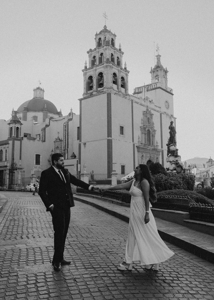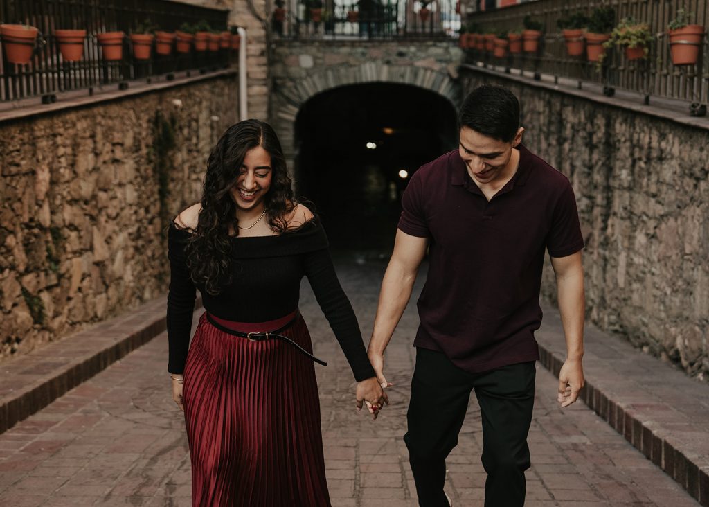 La sesión se realiza caminando por las calles del centro de Guanajuato, aprovechando su arquitectura y sus colores.